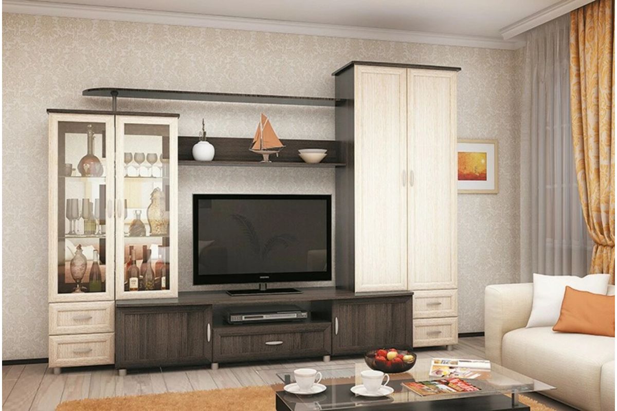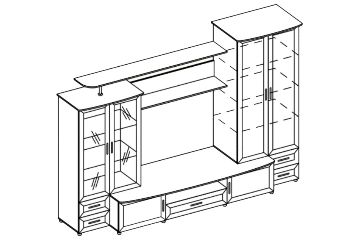 СтильКлассический | Цвет мебелиВенге Темный / Дуб Белфорд | Ширина (см) - ниша под ТВ120 |