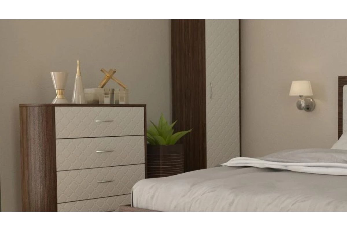 Современный гарнитур для организации пространства в спальной комнате. Выполнена из качественных, экологически безопасных материалов. Комплектация (ШхВхГ, мм): кровать 1970/1100/1450 комод... Современный гарнитур для организации пространства в спальной комнате.