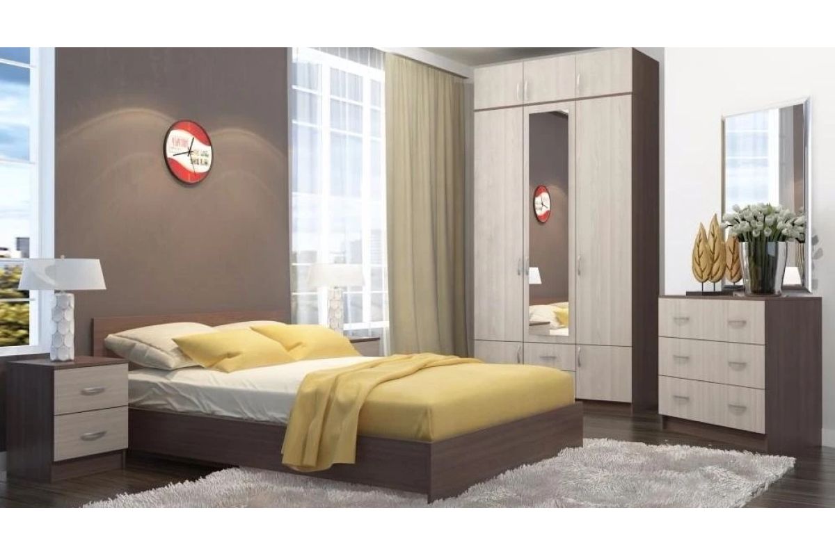 Корпус мебели изготовлен из ЛДСП цвета венге. Фасады ЛДСП беленый дуб.