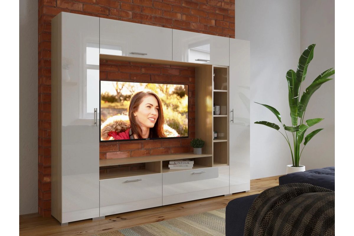 Стенка Bello дизайн 19 глянцевый МДФ размеры: длина 200 глубина 30 высота 164 .