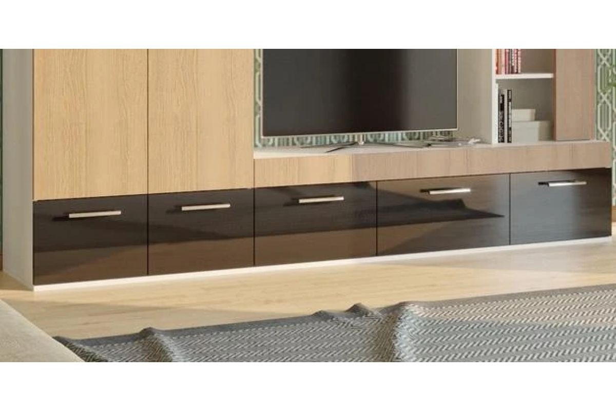Стенка Тревизо глянцевый МДФ размеры: длина 230 глубина 40 высота 200 .