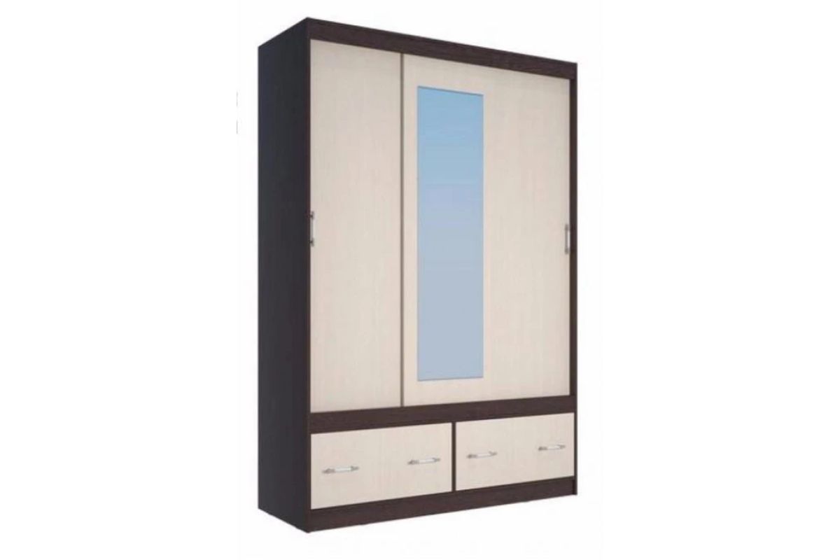 Шкаф-купе Комфорт С    изготовлен из ЛДСП. Это вместительный шкаф, в котором можно разместить вещи небольшой семьи.  Внутреннее наполнение: глубина ящиков 450 мм, ящики установлены на роликовые направляющие. Шкаф оснащен буковой штангой.